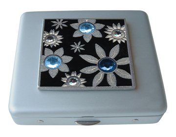 The Black Gem Garden emblem is made of hand cast pewter. Each color is individually hand painted with durable enamel. This attractive mirror pill box is constructed of aluminum in a matte finish. The case measures 2 1/2 " x 2 1/4" x 1/2" with an inside divider to keep supplements organized. Carry your pills with style and keep them close at hand. Inside mirror is helpful for those quick on the spot checks. Great gift for people on the go.