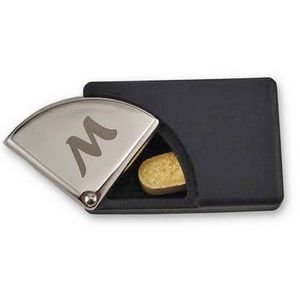 Choose a gift that is modern and stylish in black and silver. Our unique pill box with monogram design combines a black rubber case for pills accented by a distinctive silver sliding lid. Truly an original concept in gifts, this sharp looking gift is sleek and compact for convenient carrying in a pocket or briefcase. Pill case measures 1 7/8 x 1 1/4" x 1/2" dimensionally. Personalize this stylish gift for men to create an elegant engraved men's gift by adding monogrammed initial on the sliding silver lid. He will love this stylish mens accessory and think of you each time he reaches for it."
