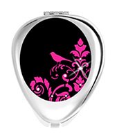 - Silver, with a black and pink bird pattern on the front.
